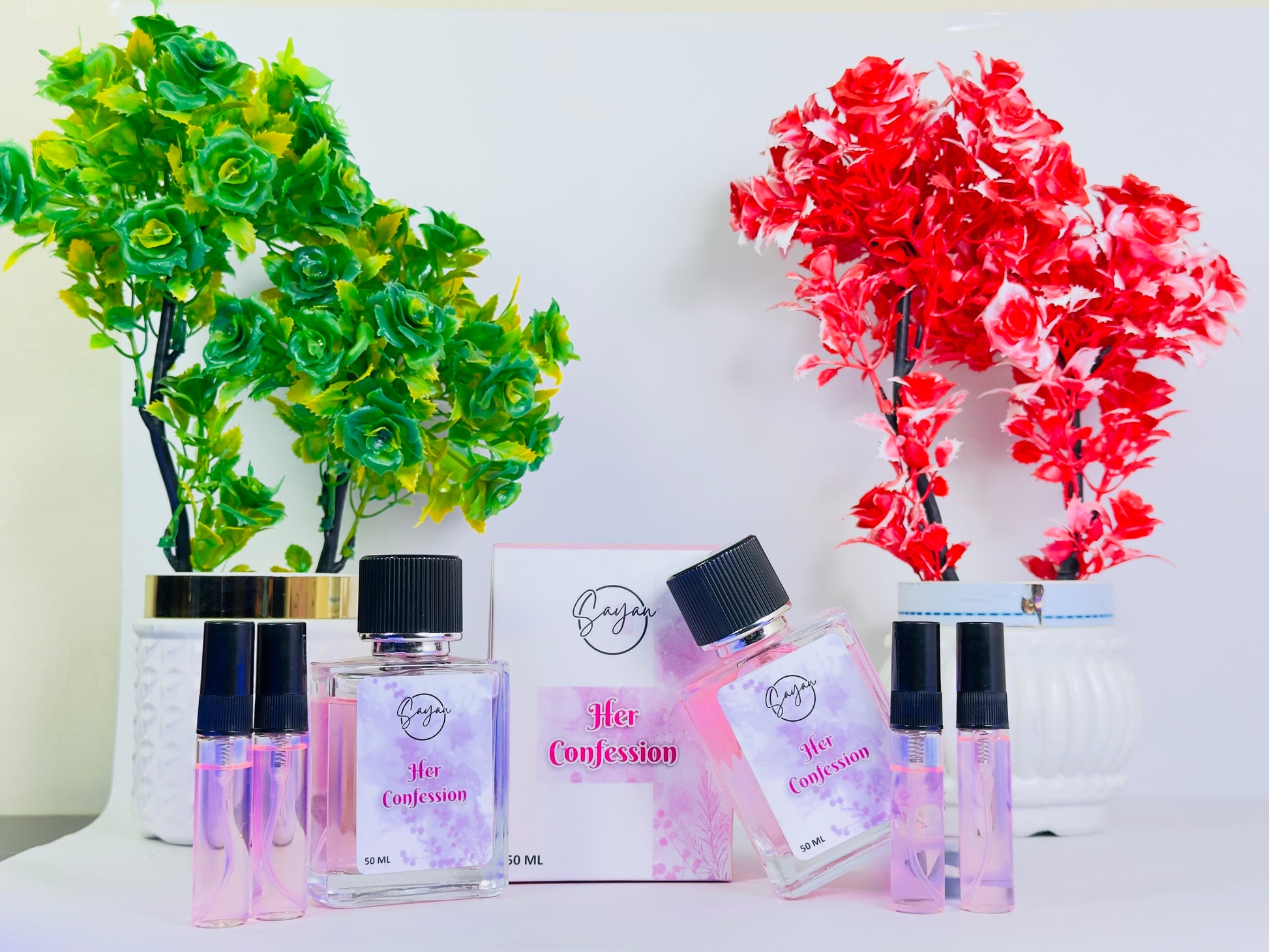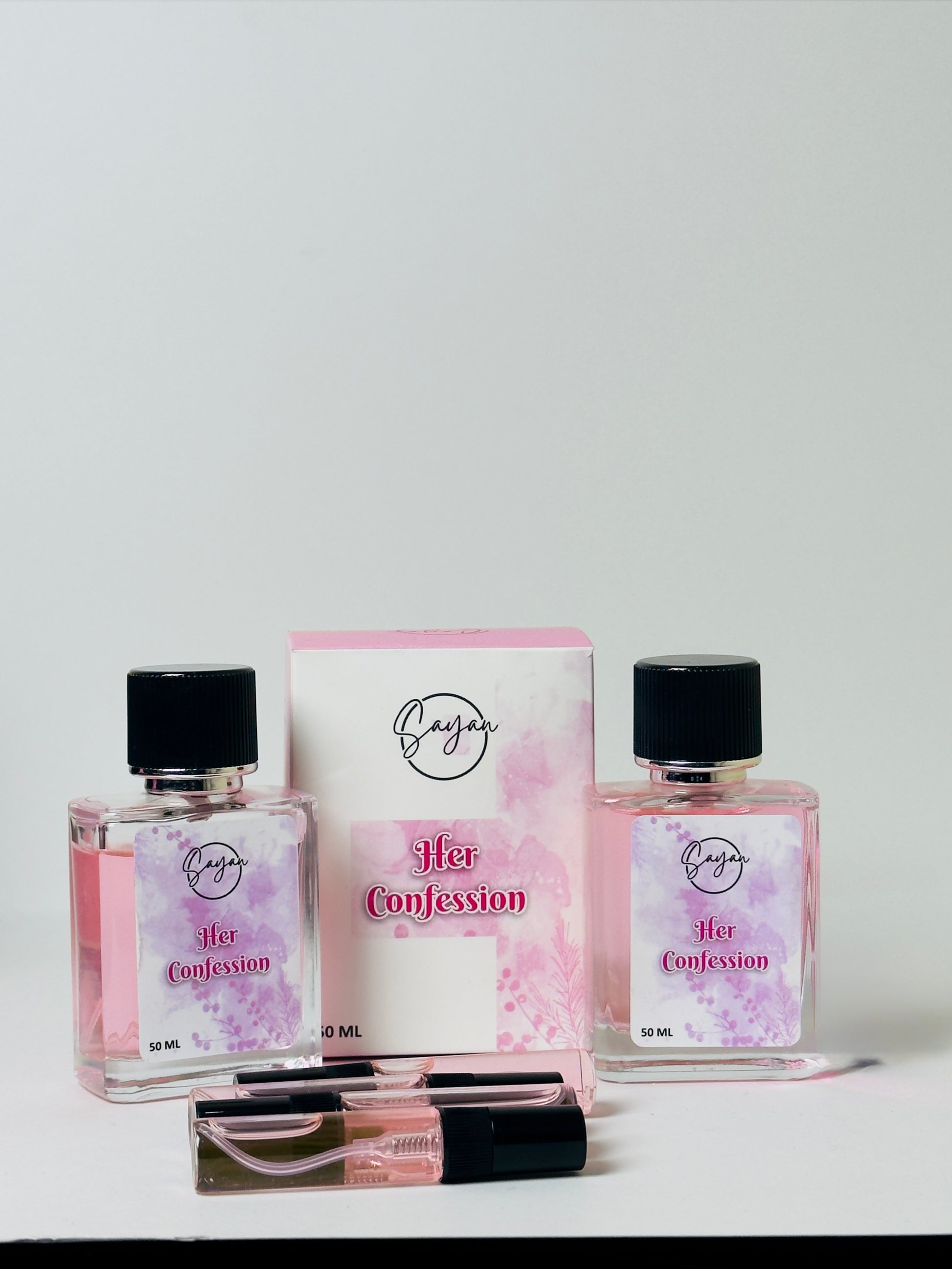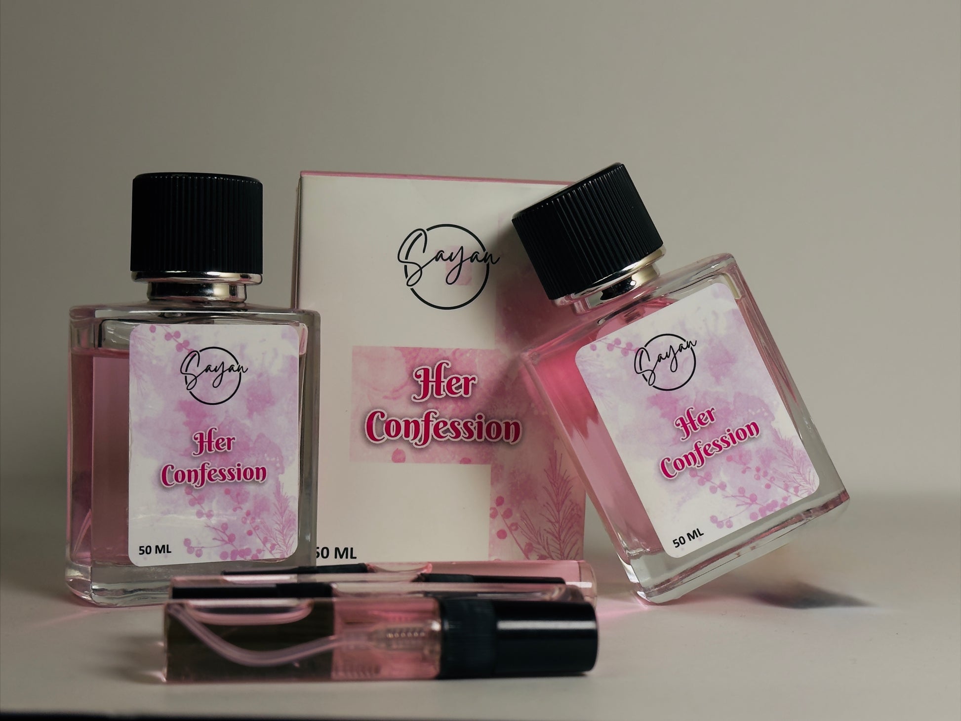 She walks in with grace, leaving whispers behind. Her Confession is more than a fragrance — it’s her secret, wrapped in notes of velvet rose, creamy vanilla, and soft musk.