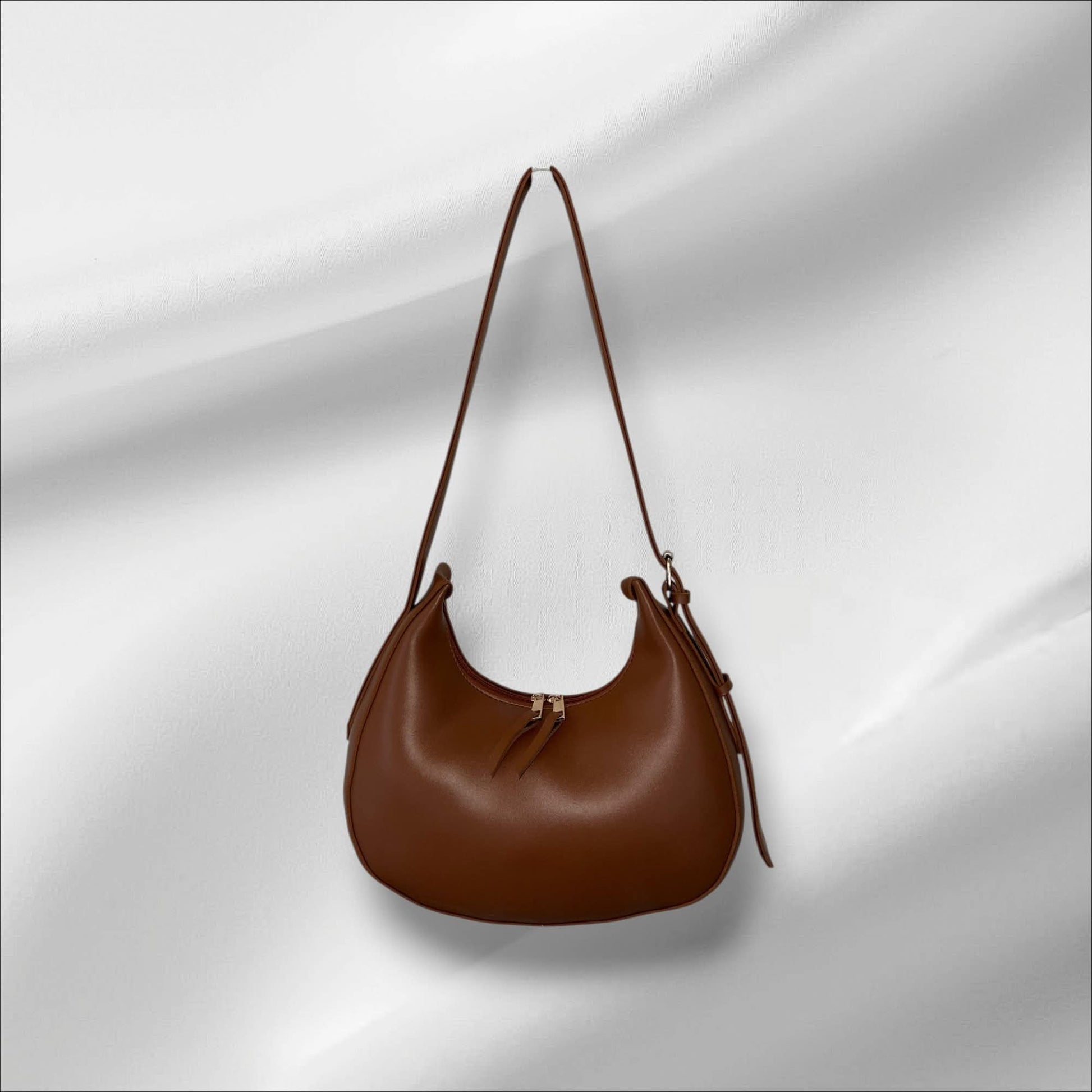 Trendy Leather Shoulder Bag – Soft Hobo Design for Daily Use
